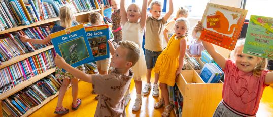 van groep 0 t/m groep 2 mogen twee boeken lenen, de leerlingen van groep 3